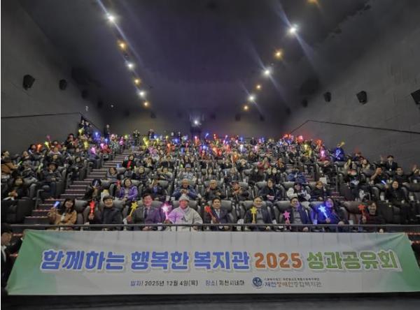 [한국제일신문, 김성옥기자] 제천장애인종합복지관은 지난 4일 오후 2시 제천시네마에서 ‘함께하는 행복한 복지관’을 부제로 2025년 성과공유회를 개최했다. 이번 행사에는 후원자, 자원봉사자, 이용인 등 160여 명이 참석했다.