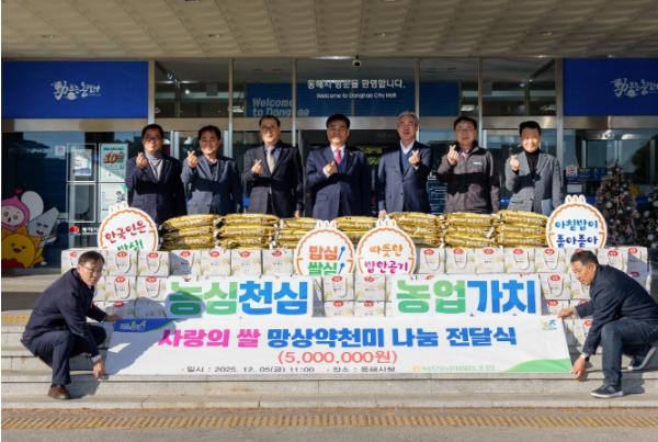 [한국제일신문, 김성옥기자] 묵호농협은 12월 5일, 지역 농업인을 지원하고 관내 저소득층 가구를 돕기 위해 자체적으로 구매한 쌀을 동해시에 기부했다.