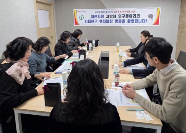 [한국제일신문, 김성옥기자] 서대문구는 대전광역시 세정담당관실이 지방세 연구 역량을 강화하고 실무형 연구조직 운영 사례를 벤치마킹하기 위해 최근 구를 방문했다고 8일 밝혔다.