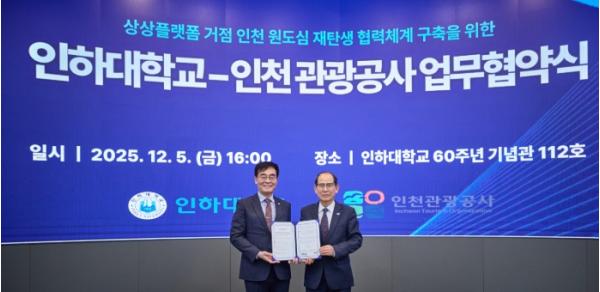 공사는 그동안 상상플랫폼을 인천 원도심 재생과 관광 활성화의 주요 추진 거점으로 활용해 왔다. 이번 협약을 계기로 인하대학교와 함께 문화·관광 콘텐츠 공동 개발, 원도심 가치 회복을 위한 실증·연구 협력, 지역 청년의 활동 기회 확대 등 다양한 분야에서 협력할 계획이다.