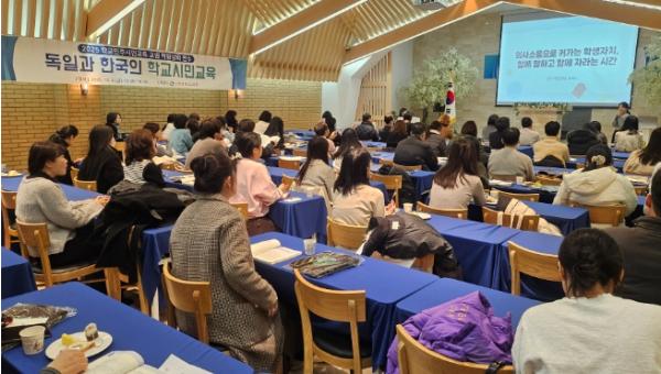이번 연수는 ‘2025 국제교류 기반 학교민주시민교육 교사아카데미’의 일환으로, 지난 7월 독일에서 민주시민교육을 탐구한 교사들이 연구 결과를 담은 『독일과 한국의 학교시민교육-세 번째 이야기』를 바탕으로 진행됐다.