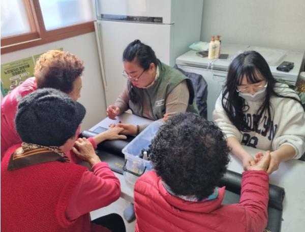 이번 행사에서는 삼성아파트 경로당 앞에서 지역 어르신과 주민들을 대상으로 혈압·혈당·인바디 검사와 더불어 이미용, 염색, 네일아트, 안마 등 다양한 의료·복지·문화 서비스를 제공해 큰 만족을 이끌어냈다.