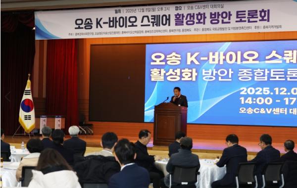 [한국제일신문, 김성옥기자] 충청북도는 12월 8일 오송 C·V센터에서 충북경제사회연구원, 오송첨단의료산업진흥재단, 충북산학융합원, 충북창조경제혁신센터, 충북연구원과 함께 ‘오송 K-바이오 스퀘어 활성화 방안 종합토론회’를 개최했다.