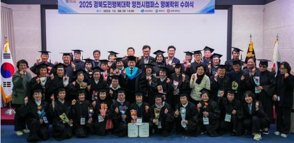 [한국제일신문, 김성옥기자] 영천시는 8일 성운대학교 강당에서 수료생과 관계자 60여 명이 참석한 가운데 ‘2025년 경북도민행복대학 영천캠퍼스 제5기 명예학위 수여식’을 개최했다.