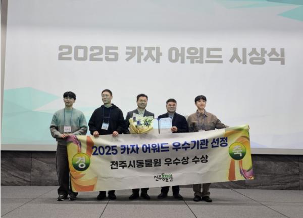전주동물원은 올해 환경부와 한국동물원수족관협회(KAZA)가 주관한 ‘2025년 동물복지 분야 우수동물원’으로 선정돼 ‘KAZA 우수동물원상’을 수상했다고 8일 밝혔다.