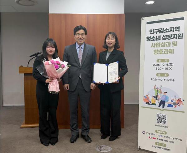 [한국제일신문, 김성옥기자] 성평등가족부가 주최한 ‘2025년 인구감소지역 청소년성장지원사업’ 우수지역 시상식이 4일 서울 포스트타워에서 열린 가운데, 안동시가 한국청소년정책연구원장상을 수상했다.