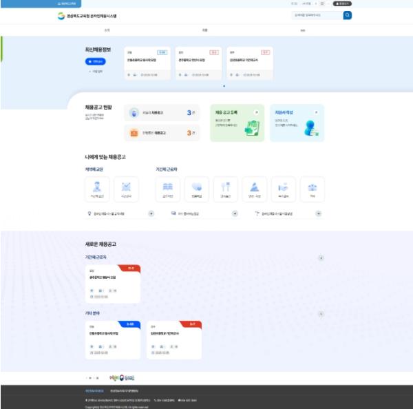 시스템에 접속하면 계약제 교원, 기간제 근로자를 포함한 각종 채용 공고를 한눈에 확인할 수 있으며, 구직자는 회원가입 후 이력과 자격 정보를 입력해 한 번의 클릭으로 온라인 지원을 완료할 수 있다.