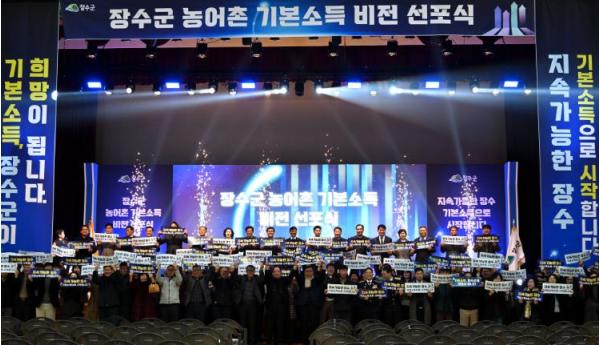 [한국제일신문, 김성관기자] 장수군은 8일 한누리전당 산디관에서 ‘농어촌 기본소득 비전 선포식’ 행사가 성황리에 개최됐다고 밝혔다.