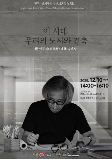 전주시 관계자는 “승효상 건축가는 ‘터무니’, 즉 땅의 자취와 성질을 존중하는 철학으로 전주 도시재생의 방향성과 깊이 맞닿아 있다”면서 “이번 강연을 통해 도시의 본질과 미래를 다시 사유하는 계기가 되길 바란다”고 말했다.