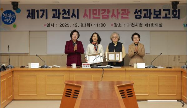 신계용 과천시장은 “시민감사관은 외부 전문가의 시각으로 제도와 관행을 점검하며 행정의 투명성과 책임성을 높이는 중요한 역할을 하고 있다”라며 “앞으로도 시민이 시정에 참여할 수 있는 구조를 확대하고 제도 발전을 적극 지원하겠다”라고 말했다.