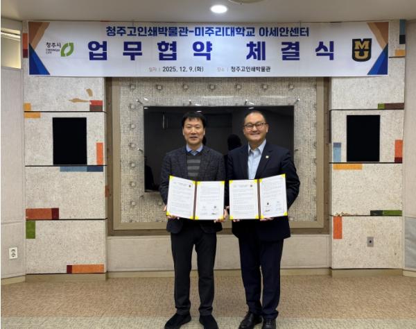 업무협약식에는 전용운 청주고인쇄박물관장과 김상순 미주리대학교 아세안센터 소장이 참석했다.