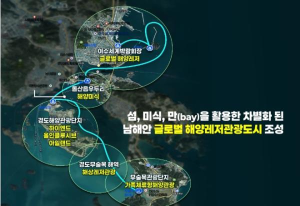섬, 미식, 만(BAY)을 활용한 차별화된 글로벌 복합해양레저관광 인프라가 구축되면 2040년까지 관광객 3천500만 명, 관광 수입 5조 원, 고용 창출 1만 5천 명으로 경제 활성화와 일자리 창출이 기대된다.