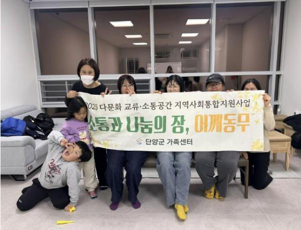 [한국제일신문, 김성옥기자] 단양군가족센터는 3월부터 11월까지 진행한 ‘소통과 나눔의 장, 어깨동무’ 프로그램을 성황리에 마무리했다고 9일 밝혔다. 이번 프로그램은 다문화 부모와 비다문화 부모가 함께 참여해 양육 경험과 문화적 배경을 공유하며 지역 내 사회적 통합을 도모하기 위해 운영됐다.