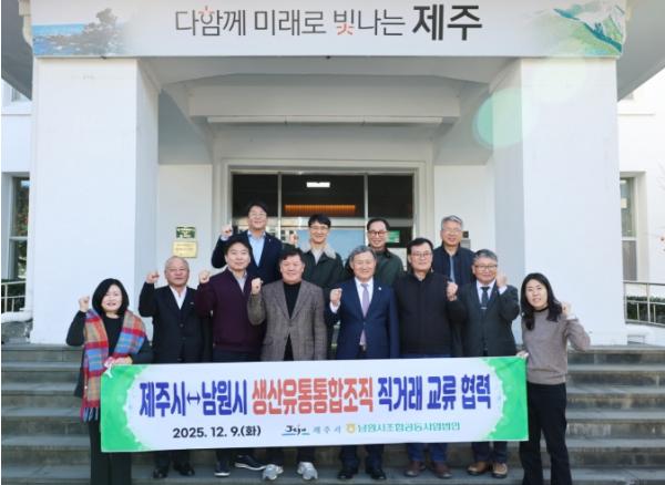 [한국제일신문, 김성옥기자] 제주시는 12월 9일 시장 집무실에서 전라남도 남원시 지역농협 조합장 등과 함께 ‘농산물 직거래 확대를 위한 협력 간담회’를 개최했다.