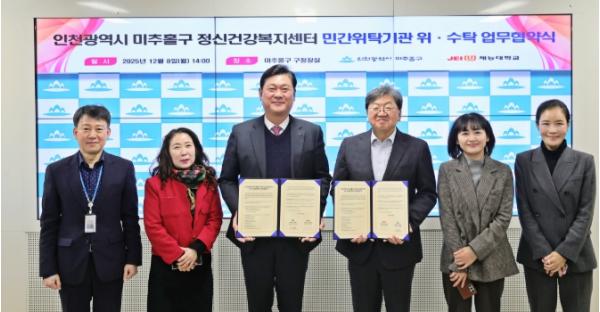 [한국제일신문, 김성옥기자] 인천 미추홀구는 지난 8일 구청장실에서 재능대학교 산학협력단(단장 이주미)과 정신건강복지센터 위탁 운영 협약을 체결했다.