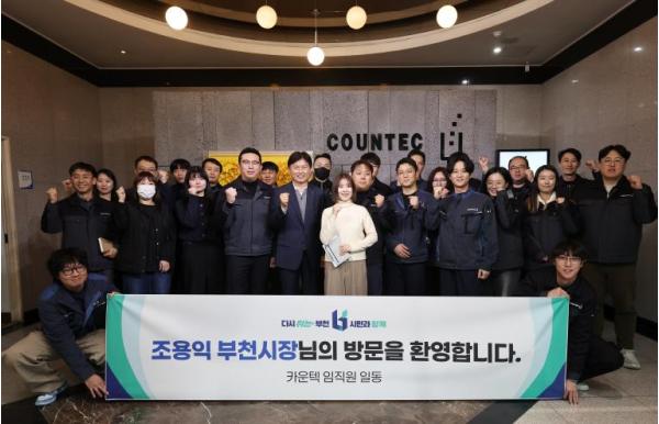 [한국제일신문, 김성옥기자] 부천시는 지난 9일 찾아가는 열린시장실 ‘현답부천’을 통해 글로벌 제약 장비 전문기업 ㈜카운텍과 전자 제조 분야 강소기업인 ㈜현테크씨앤아이를 방문해 생산 공정과 기술 역량을 확인하고, 기업 현장의 의견을 청취하는 시간을 가졌다.