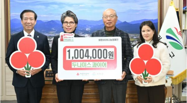한편, 2017년 창단되어 거창 합창제 등 다수의 공연에 참여하고 있는 두나미스 콰이어는 합창단의 마음을 모아 올해 아림1004운동에 처음으로 동참해 1,004천원을 기탁하며 지역사회 봉사활동 영역을 넓혔다.