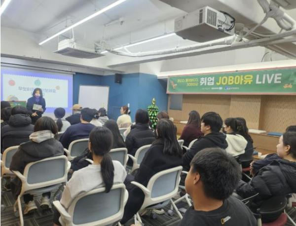아울러, 센터 내에 마련된 ‘JOB아유 스테이션’ 체험 부스에서는 △취업 메이크업‧이미지메이킹 △퍼스널컬러 진단 △AI 직무분석 △컨설턴트 1:1 맞춤 상담 등 실전형 취업 지원 서비스를 제공했다. 이와 함께 ‘쿠키로 쓰는 새해 소망’, 타로 기반 진로‧취업 상담 등 힐링 프로그램도 운영해 참여 만족도를 높였으며, 참가자에게는 취업 증명사진 촬영 쿠폰 등 실질적인 혜택도 제공됐다.
