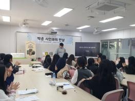 대정여자고등학교 학생 20여 명이 참여한 가운데 박준 시인은 시인이 된 과정과 글쓰기의 태도에 대해 설명하고 언어 선택의 책임과 영향력에 대해 강조했다.