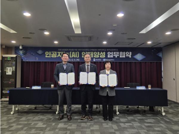 [한국제일신문, 김성옥기자] 제주국제자유도시개발센터는 12월 11일 제주대학교, 제주상공회의소와 함께 도내 인공지능(AI) 전문인재 양성을 위한 업무협약을 체결했다.