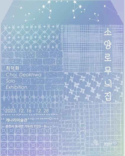 강원문화재단(대표이사 신현상)은 '2025 강원다운작품개발지원' 2년차 지원사업에 선정된 최덕화 작가의 개인전 '소양로 무늬집'이 오는 16일부터 28일까지 춘천 개나리미술관에서 개최된다고 밝혔다.