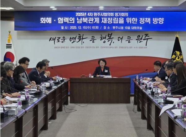 [한국제일신문, 김성광기자] 민주평화통일자문회의 원주시협의회는 지난 10일 시청에서 자문위원과 관계 공무원 등 70여 명이 참석한 가운데 ‘화해·협력의 남북관계 재정립을 위한 정책 방향’을 주제로 ‘2025년 4차 정기회의’를 개최했다.