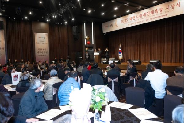 이번 시상식은 올 한 해 각종 장애인체육대회에서 우수한 성적을 거둔 선수와 제천시 장애인체육 활성화를 위해 헌신한 관계자를 격려하기 위해 마련됐으며, 최우수선수상·우수선수상·우수단체상·지도자상·감사패·제천시장 표창·제천시의회 의장 표창 등 7개 부문에서 수상이 진행됐다.