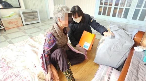이번 활동은 겨울철 기온 급강하로 인해 건강 위험이 커질 수 있는 맞춤형 사례관리 대상 치매어르신의 안전을 보호하기 위해 마련됐다. 센터는 사례관리대상자 300가구에 순차적으로 가정방문 하여 ▲방한용 이불세트 ▲외출용 방한용품(장갑·모자 등)을 전달하고, 난방 안전 점검과 더불어 한파 대비 행동요령을 안내했다.