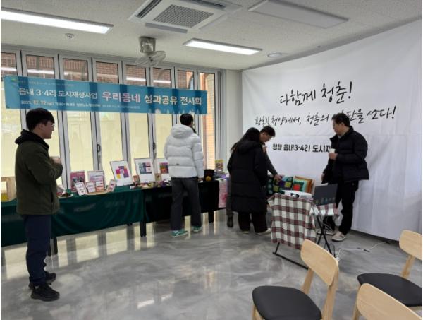[한국제일신문, 김성옥기자] 청양군은 12일 읍내3·4리 도시재생사업 주민역량강화사업의 주민참여 성과를 공유하기 위한 ‘우리동네 성과공유 전시회’를 개최했다고 밝혔다.