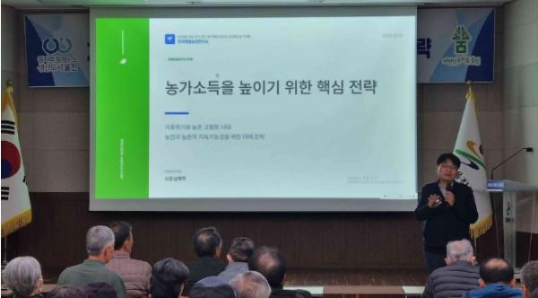 강연에서는 ▲기후변화에 따른 작물 생육환경 변화 ▲농업 총생산 구조와 농가 소득 정체 원인 ▲한국 농업의 구조적 한계 등을 다루며 울진군 농업이 직면한 과제를 공유했다.