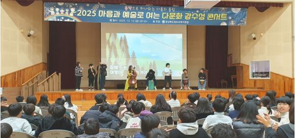 [한국제일신문, 김성옥기자] 경상북도청도교육지원청은 2025년 12월 12일 청도초등학교 강당에서 3~4학년 학생 140여 명을 대상으로 ‘음악으로 잇는 다름과 조화의 시간’ 다문화 감수성 콘서트를 운영했다. 이번 프로그램은 음악을 통한 감성적 경험을 기반으로 학생들의 다문화 이해와 공감 능력을 높이기 위해 마련됐다.