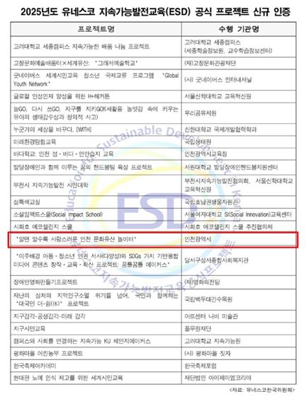 이번 인증 결과 전국에서 총 23개 프로젝트가 공식 인증됐으며, ‘인천 문화유산 놀이터’가 그 중 하나로 선정되며 프로그램의 교육적·사회적 가치를 인정받았다.