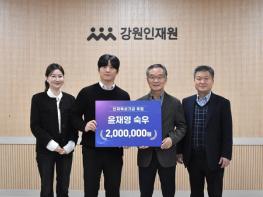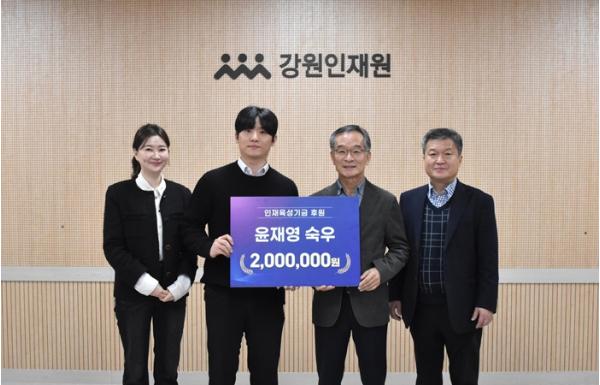 [한국제일신문, 김성옥기자] 최근 강원학사를 졸업한 윤재영 숙우(25세)가 후배 인재 육성을 위한 기부금 200만 원을 강원인재원에 기탁했다.