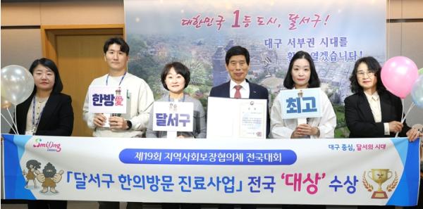 이번 공모전은 전국 226개 지방자치단체를 대상으로 지역사회보장협의체가 운영 중인 우수사업을 발굴·심사해 시상하는 자리로, 달서구는 ‘달서 한의방문진료사업’의 혁신성과 효과성을 인정받아 최고상인 대상을 수상하는 영예를 안았다.