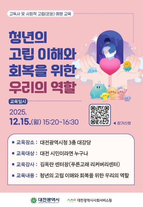 대전시는 1인 가구 비율이 2025년 11월 기준 44%로 매우 높은 도시 구조로 사회적 고립․은둔 문제에 선제적으로 대응하는 것이 중요한 과제로 부상하고 있다.