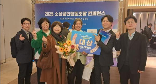 [한국제일신문, 김성옥기자] 대구 중구는 지난달 26일 중소벤처기업부와 소상공인시장진흥공단이 부산 웨스틴조선호텔에서 개최한 ‘2025년 소상공인협동조합 성과공유 컨퍼런스’에서 열린 ‘2025년 소상공인협동조합 비즈니스모델(BM) 경진대회’에서 대구 남산동 인쇄 골목을 중심으로 활동하는 디지털인쇄협동조합(이사장 윤지현)이 대상을 받았다고 밝혔다.