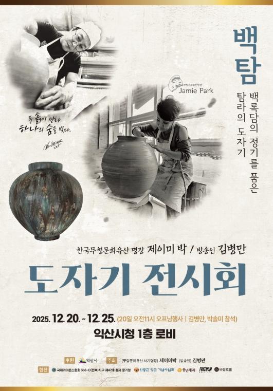 시 관계자는 "대한민국을 대표하는 도자기 명장 제이미 박과 그의 제자 김병만 씨의 작품을 익산에서 만날 수 있는 뜻깊은 전시"라며 "시민들이 예술과 나눔이 어우러진 연말 문화생활을 즐기시길 바란다"고 말했다.