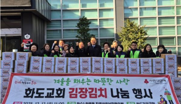 [한국제일신문, 김성옥기자] 인천 동구 화수1·화평동 지역사회보장협의체(민간위원장 신기우)와 화도감리교회는 지난 12일 관내 취약계층 60세대에 김장김치를 전달하며 따뜻한 이웃사랑을 실천했다고 밝혔다.