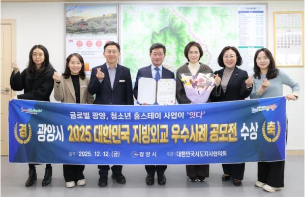 [한국제일신문, 윤진성기자] 광양시는 지난 12일 대한민국시도지사협의회가 주관한 ‘2025 전국 지방외교 우수사례 공모전’ 본선에서 국제 청소년 홈스테이 사업이 ‘장려상’을 수상했다고 밝혔다.