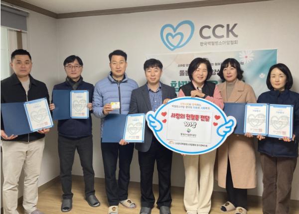 달성군시설관리공단(이사장 공진환)은 16일, 산하 6개 사업장이 참여한 가운데 한국백혈병소아암협회 대구·경북지회에 헌혈증서 101장을 전달하며, 사업장별로 감사장을 수여 받았다고 밝혔다.