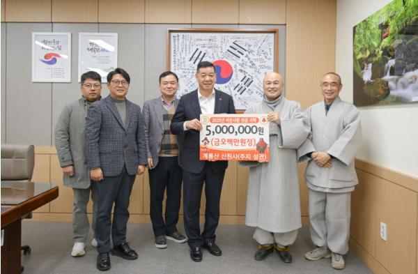 [한국제일신문, 김성옥기자] 공주시는 대한불교조계종 신원사가 지난 16일 시청 상황실에서 이웃돕기 성금 500만 원을 전달했다고 밝혔다.