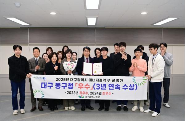 [한국제일신문, 김성옥기자] 대구 동구청은 ‘2025년 대구광역시 에너지절약 구·군 평가’에서 우수상을 수상했다. 2023~2024년 최우수상 수상에 이어 3년 연속 수상이다.