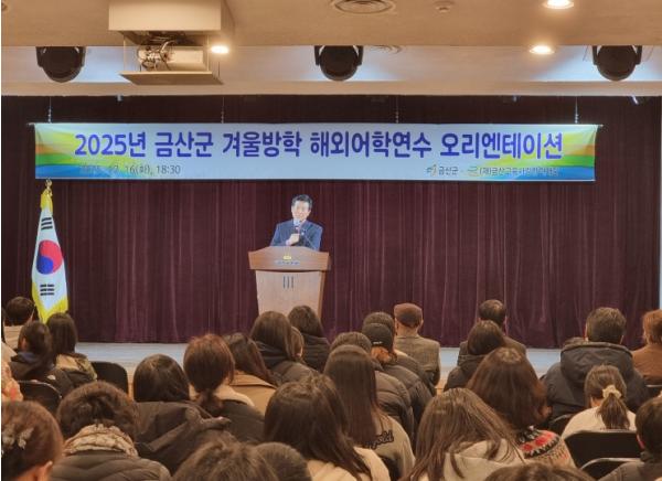 [한국제일신문, 김성옥기자] 금산군의 대표적인 글로벌 인재육성 프로그램인 초중생 해외어학연수 출발에 앞서 지난 16일 금산다락원 소공연장에서 학생과 학부모 등 160여 명을 대상으로 사전 오리엔테이션을 개최했다.