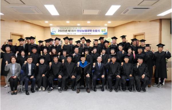 [한국제일신문, 윤진성기자] 영암군이 15일 영암군농업기술센터에서 ‘2025년 영암농업대학 수료식’을 열고, 제18기 무화과·한우 과정 수료생 49명을 배출했다.