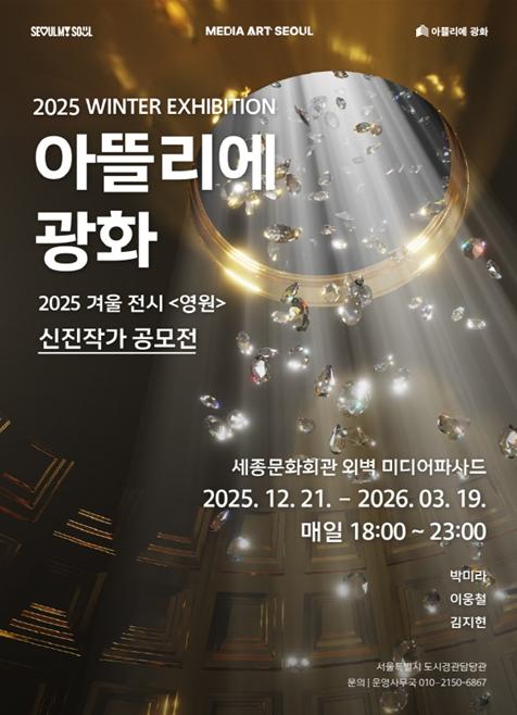 먼저 세종문화회관 정면과 측면부 외벽에 선보이는 대형 미디어파사드 '아뜰리에 광화'는 겨울 시즌을 맞아 ‘신진작가 공모전’ 전시를 선보인다.