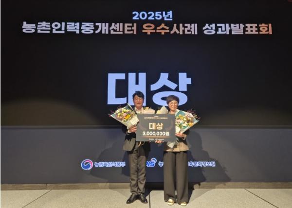 [한국제일신문, 윤진성기자] 전북특별자치도는 농림축산식품부가 올해 처음 실시한‘2025년 농촌인력중개센터 성과평가’에서 공공형 분야 대상과 농촌형 분야 장려상을 동시에 수상하며, 전국에서 유일하게 두 개 분야 모두에서 수상 기관을 배출했다고 17일 밝혔다.