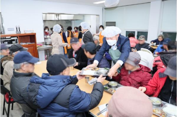 [한국제일신문, 김성옥기자] 김완근 제주시장은 12월 17일 제주시 노인복지회관 경로식당을 찾아 무료 급식 현장을 살피고, 직접 배식 봉사에 참여했다.