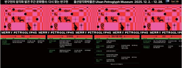 [한국제일신문, 김성옥기자] 울산암각화박물관은 오는 12월 20일부터 28일까지 ‘2025 암각화 발견 주간 문화행사-다시 찾는 반구천’을 개최한다고 밝혔다.