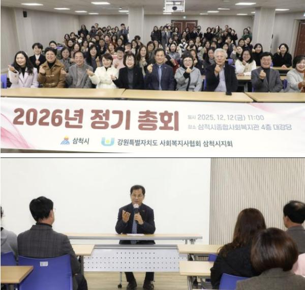 [한국제일신문, 김성옥기자] 강원특별자치도사회복지사협회 삼척시지회는 12월 12일 삼척시종합사회복지관 4층 대강당에서 ‘2026년 정기총회’를 개최했다.