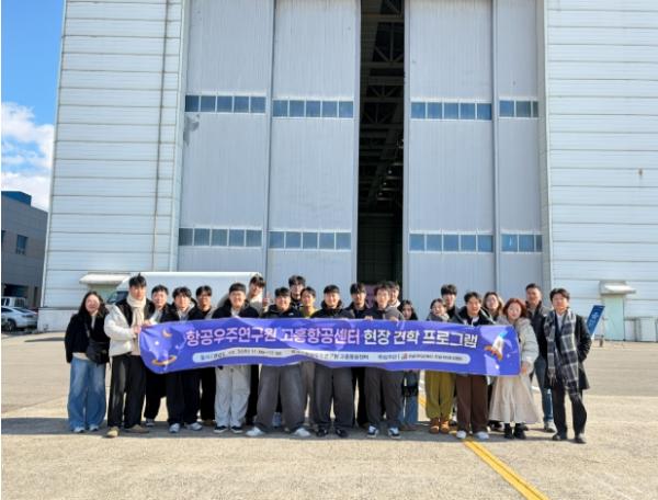 지난 3일 여수캠퍼스 기계설계공학과 등 공학계열 학부·대학원생 20여 명이 참여한 이번 현장견학에서는 시험·평가 설비와 항공우주 산업 연구시설을 둘러보고, 친환경 항공추진 기술의 연구 방향을 살펴봤다.